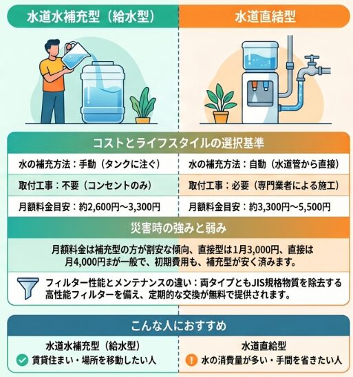 天然水と浄水型は「優劣」ではなく、「何を重視するか」で選び方が変わります。
